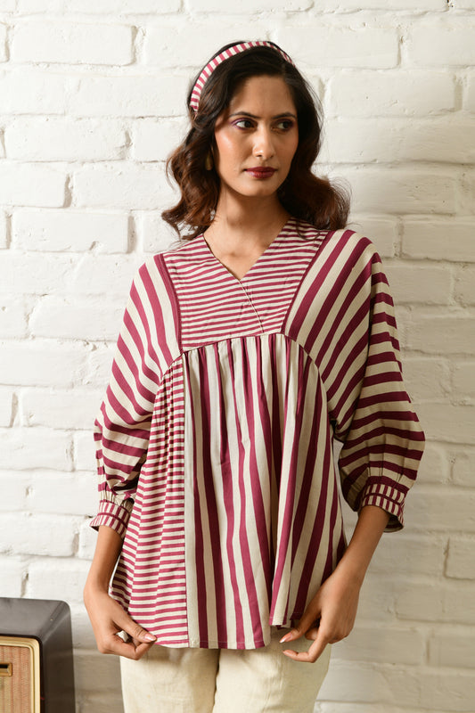 Luna Maroon Stripe Long Top