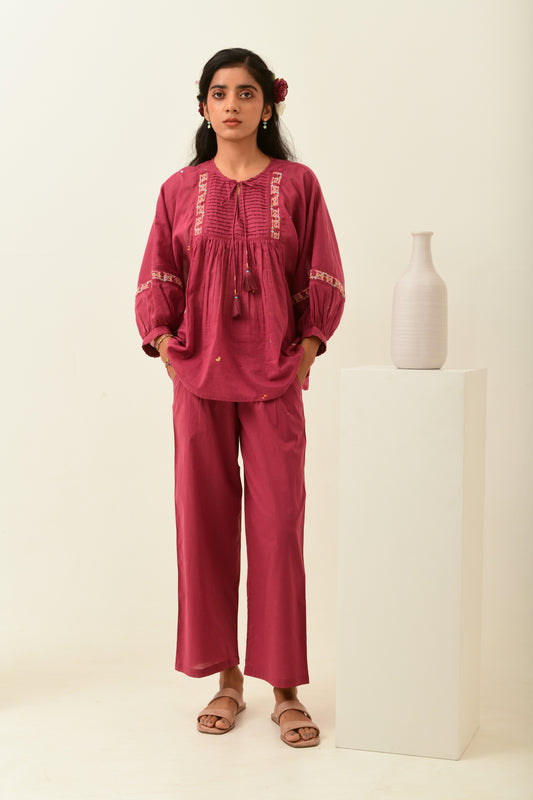 Rust Pink Smoked Straight Pants