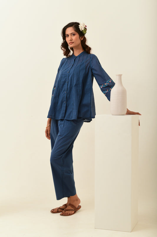 Blue Smocked Straight Pants
