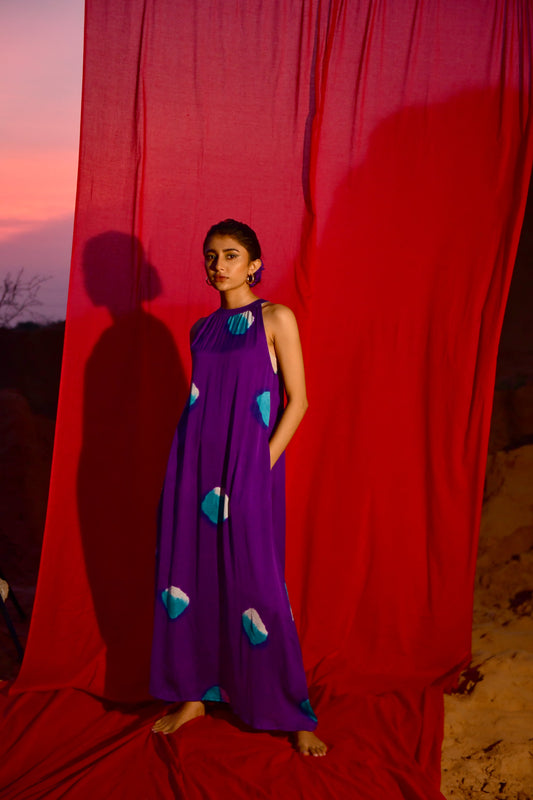 Sold outZyra Purple Tie-Dye Halter Dress