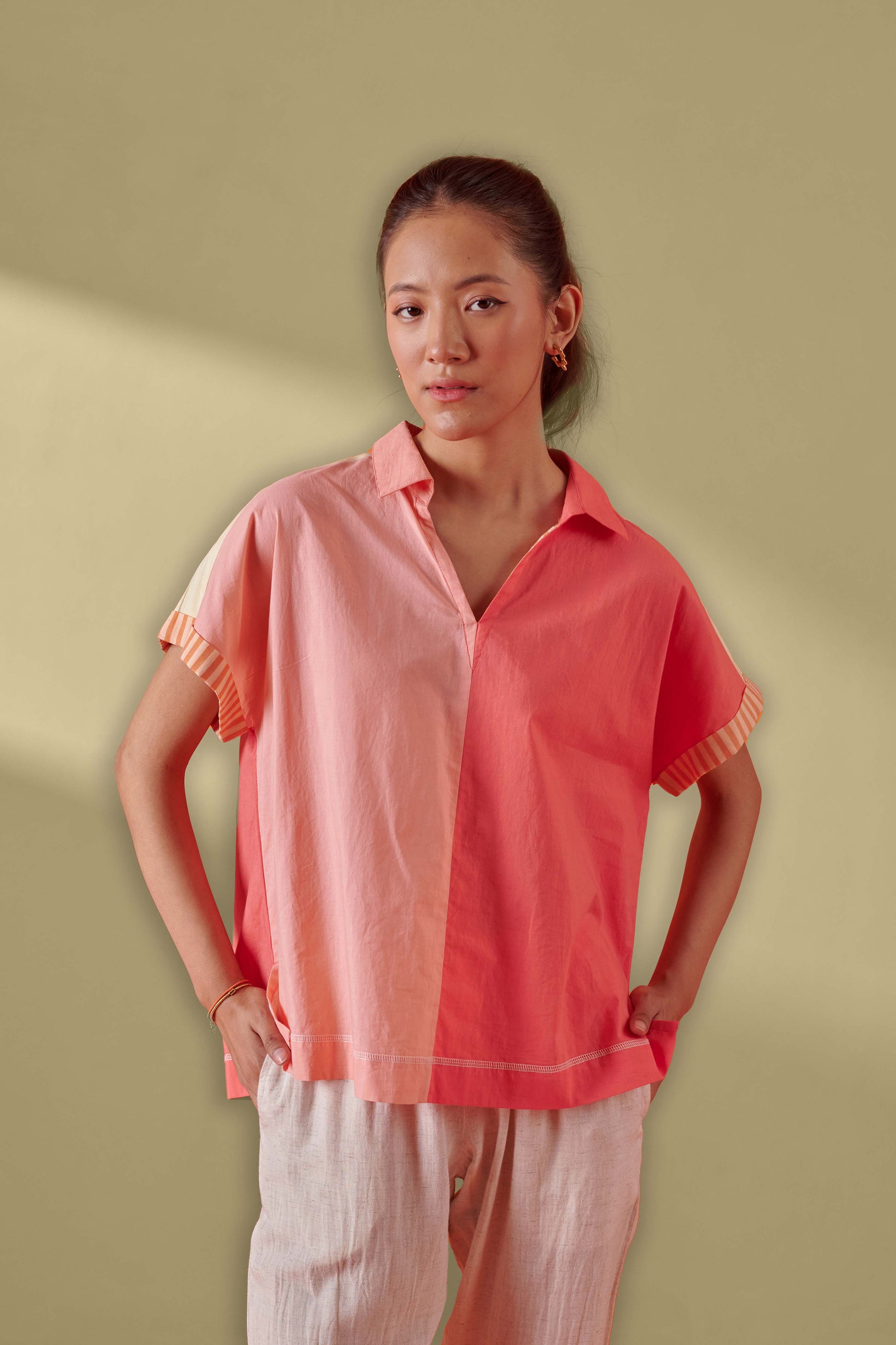 The Ziva Top brings together bright summer hues and a breezy silhouette for everyday ease. Designed with colour-blocked panels in peach and pink,—perfect for warm, carefree days.